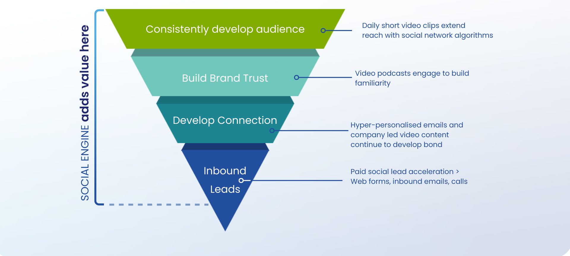 We run high-quality video social campaigns that consistently grow your audience and build trust over time. Then we use video ads, hyper-personalised email and paid social to generate leads.